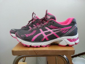 Tämän jälkeen kävimme sitten etsimään niitä ”ylipronaatio-kenkiä”, joilla on hyvä juosta. Kokeilin Nike- ja Asics-merkkisiä juoksukenkiä, joista sitten yhdet oli ylitse muiden: Asics gel convector-kengät. Kengät tuntuivat todella hyviltä jaloissa, en tiennytkään, että kenkä voi tuntua noin hyvältä 😀 Hintaa oli kengillä alennuksenkin jälkeen aika paljon, 139€. Mutta jos aion jatkaa lenkkeilyä ja juosta kesällä puolimaratonin, niin hintaa ei paljoa saa tuijotella.
