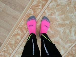Ostin tuollaiset aika piukat juoksuhousut, mutta niin ne tulee ollakin, jotta on kevyt juosta. Toki noita voi käyttää vasta sitten vähän keväämmällä, kun ilmat ovat lämpimämmät (+ ehdin vielä vähän laihtua 😀 ). Tuo juoksutakki oli muuten kokoa 36 ja housut 38! En muistakkaan, milloin 38-kokoiset housut olisivat menneet viimeksi jalkaan!